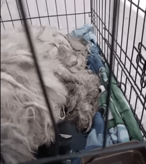 His condition spoke of long-term neglect. His fur was not just matted—it was woven into ropes, tangled with filth and waste. His skin was riddled with pus-filled wounds and sores from lying in one place for too long. On his nose was a deep wound, likely caused by being pressed against the bars of a cage.