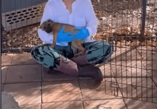Julia knew she couldn’t rush this. So she knelt on the ground, speaking gently, and offered tiny bits of food. Just enough to spark curiosity. Enough to make the puppy inch forward. Hours passed as Julia waited, coaxing, showing patience that cruelty had long denied this dog.