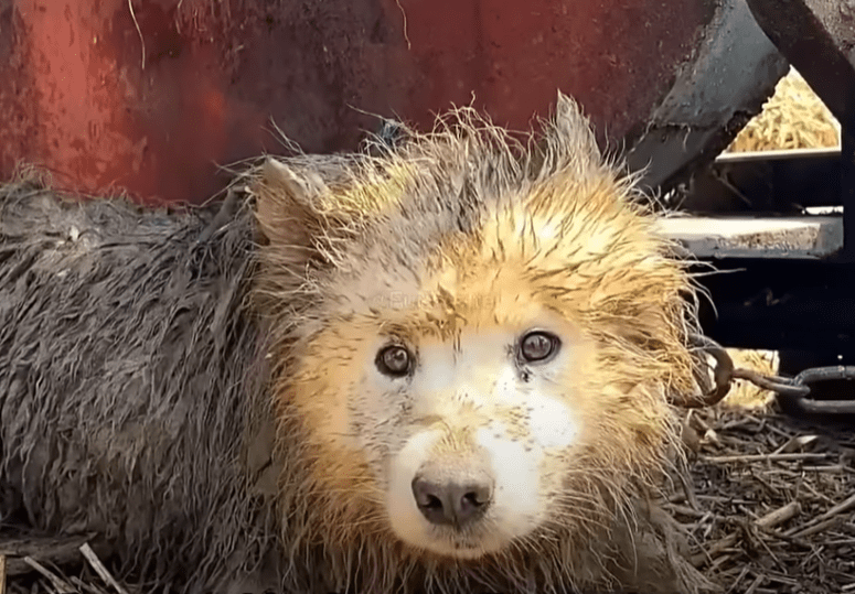 When they arrived, the sight shattered them. Hiding beneath a rusty machine, Beike trembled, his once-white fur dirty and tangled. He curled his body tightly, as though hoping he could disappear from the world. A wound on his leg was clearly visible, and his eyes were pools of fear. The happy, trusting dog they remembered was gone.