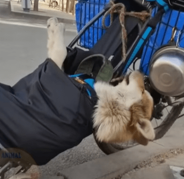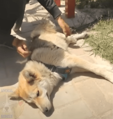 A dog dragging himself under the burning sun, his body thin, dirty, and weak. But the worst part? His back legs were tied together with rope.