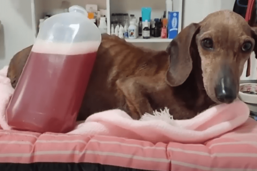 The stranger, though overwhelmed, agreed to everything the doctors suggested. They trusted that the veterinarians were her only chance. The vet explained one more step: they needed to puncture her belly and drain the fluid. It was a painful choice to make, but it was the only way to give her relief. With a nod of determination, the stranger gave their consent.