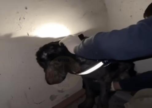 Rescuers found William in that desperate state—bleeding, weak, so emaciated that every rib was visible beneath his dull coat. They rushed to his side, gentle hands lifting his frail body as though he might break apart in their arms. In that moment, he did not resist. He was too tired to struggle, too weary to fear. Somewhere deep inside, perhaps, he recognized that help had finally arrived.