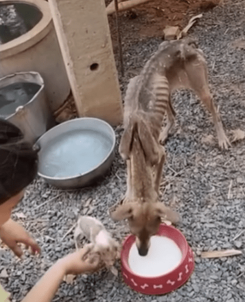 I had never seen such a fragile puppy before. His body was tiny, filthy, and every rib stood out against his thin skin. Both mother and child were so malnourished that they swayed when they tried to walk. Hunger had stolen nearly all of their strength.