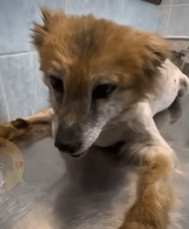 He was lying on the side of a deserted road, an old and frail dog whose body seemed more ghost than flesh. His ribs jutted sharply against paper-thin skin, his fur was tangled and matted into lifeless clumps, and his eyes—once windows to a soul—looked sunken, hollow, almost empty. Each breath he drew rattled through him as though it might be his last.