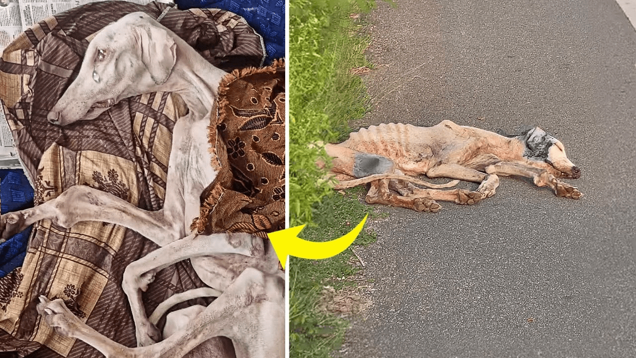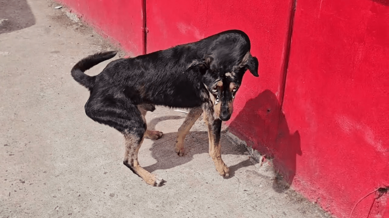 He was found wandering the streets, a shadow of what a dog should be. His body trembled, his eyes wet…
