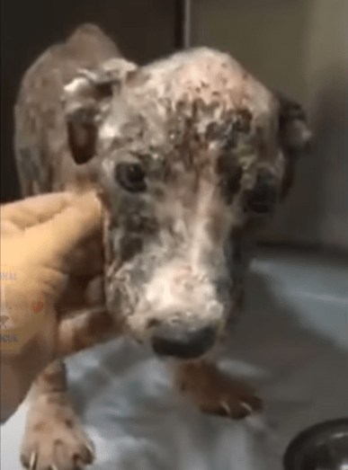 Petra was bald, her fur gone. Mange had ravaged her young body, leaving her skin raw, scaly, and bloody. Her fragile frame trembled from weakness. Every touch revealed just how close she had been to giving up.