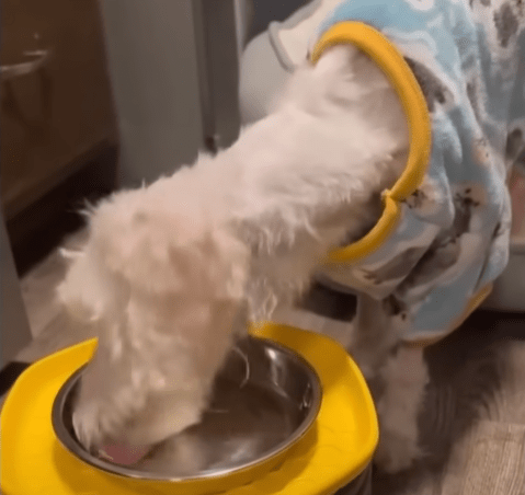 At Liz’s home, Phoenix was gently bundled in a soft blanket, snug like a burrito. For the first time in who knows how long, she slept soundly through the night. The next morning, she devoured her food with such joy it was impossible not to smile. Every bite was a treasure to her, as if she was tasting life itself for the very first time. By the second day, she was still cautious, unsure of the world around her. But she began to relax, leaning into comfort like a child rediscovering safety. Food became her passion—wild, unstoppable joy. She attacked every meal with such determination that Liz had to introduce licking mats to slow her down.