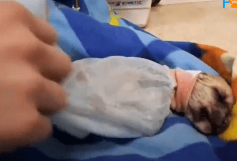 At the clinic, her situation was critical. Her tiny veins were too fragile for an IV line, so fluids had to be given subcutaneously. Warm milk was fed to her through a syringe, drop by drop. Pain relief and careful treatment began at once. The veterinary team worked tirelessly, doing everything they could. “So much is in their hands now,” her rescuers whispered, praying she would survive.
