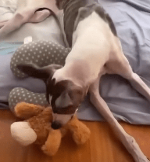 Months passed. The stiff, cold body we had once found was now vibrant, full of life. Sarita learned again how to play, to stand tall, to wave those long, silly legs in the air. She ran freely in her backyard, chasing toys, barking with delight.
