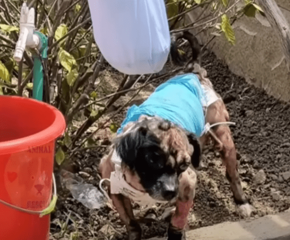 Day by day, progress came in fragile but hopeful steps. He could stand without collapsing. He could walk, slowly, but with determination. His appetite returned, helping him put on much-needed weight. His skin began to heal, his fur starting to grow back where infection had once ravaged him. Perhaps most importantly, his spirit was awakening. He played with the water in his bucket. He lay in the sun with his eyes closed, savoring the warmth. Sometimes, he barked softly, as if trying to tell us his story.