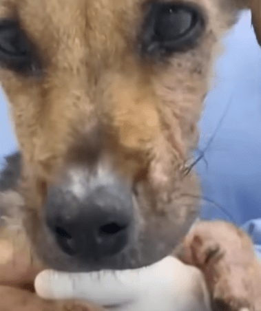 She was rushed to the hospital. Terrified, fragile, broken—but alive. A collar still hung around her neck, proof that she once had an owner. Proof that someone had failed her. Her skin was falling off in patches. She bled with every movement. She could not stand, could not walk, could barely draw breath. The vet’s words cut deep: “Her condition is critical.” Antibiotics, fluids, pain relief—everything possible was done to steady her fragile body. The team whispered silent prayers over her tiny form. Please, let her fight. Please, don’t let her suffer alone.