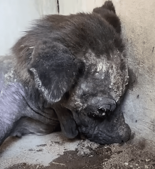 Koda’s story began in the most heartbreaking way. For months, this helpless puppy was locked away in a dark place. His world was confined to a small, suffocating space where he couldn’t see the light, hear the sounds of the outside world, or feel the warmth of human affection. The moment I opened the door to this miserable prison, he was blinded by the light. His small body, severely infested with mange, trembled in fear as I reached out to touch him.