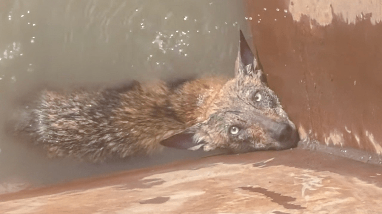 The shock of the cold had stolen its strength instantly. At first, it tried to swim, tried to claw its way up the slick concrete walls, but the water dragged at its legs. Each attempt failed, and each failure sapped more hope. Hours turned into a day, then another. Alone in that pit, the wolf felt not just the cold of the water but the cold of despair. And then—just when the last of its strength was fading—footsteps.
