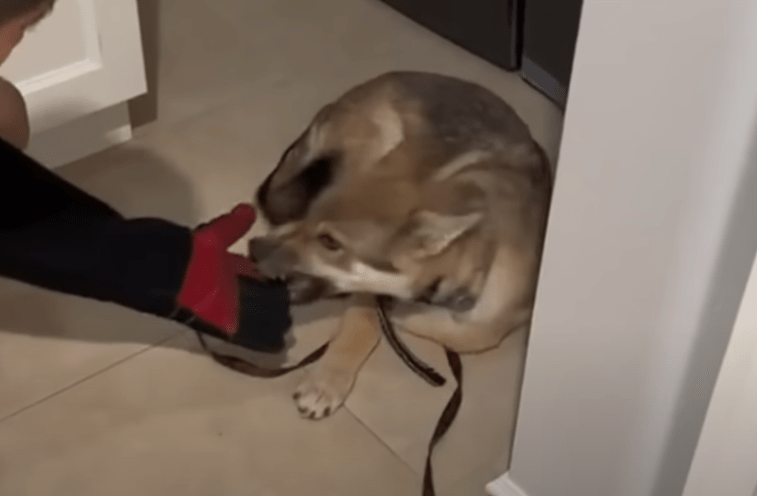 In the first days, that fear was strong. Whenever anyone approached, the wolf pulled back, pressing itself against corners, its gaze sharp with suspicion. It ate little, only nibbling when no one was watching. It moved stiffly, as though expecting pain to strike at any moment. But the man and his family were patient. They offered food, warmth, and kindness without demanding trust in return. They gave the wolf space, waiting silently each time until it felt safe enough to step forward. And slowly, the walls around its heart began to crumble.