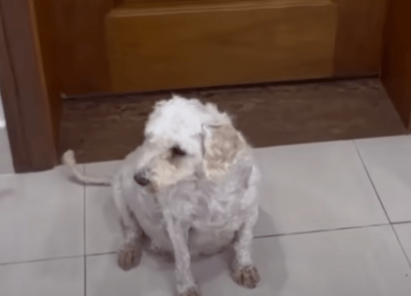 We spoke to her softly, calming her, and offered to help. To our relief, she agreed in the only way she could—by following us. But the clock had already struck eleven, and every veterinary clinic was closed. There was no choice but to take her home. That night, we washed away the dirt from her fur and gave her a place to rest.