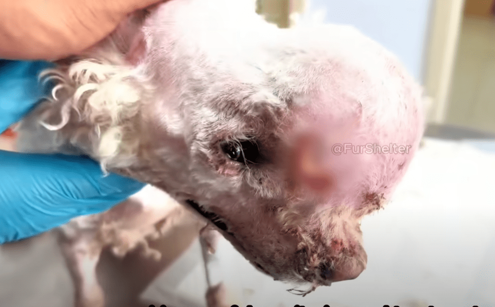 The rescue team arrived to find a tiny dog sprawled on the scorching pavement, his chest rising and falling in rapid, desperate gasps. He looked abandoned, discarded like a forgotten object. His tongue lolled, panting from the heat, and his frail body trembled with exhaustion. But most haunting of all was the swelling—an enormous, grotesque tumor covering much of his head, distorting his features into a mask of suffering.