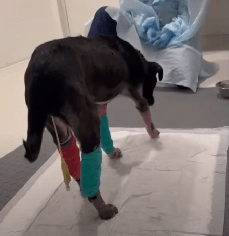 Her days settled into a routine of treatments under sedation, endless exams, dressing changes. It was exhausting, but necessary. With time, her body began to heal. Her muzzle softened, her eyes grew less clouded, and her steps—though halting—were more confident. Rehabilitation began.