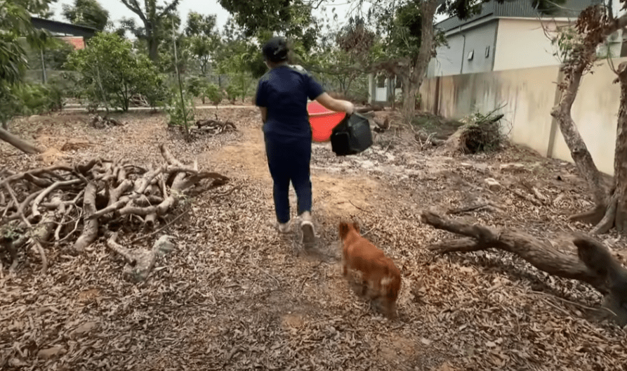 One by one, we lifted the fragile pups into a box lined with towels. Their bodies were overheated, their breathing shallow. Some squeaked softly, others were too exhausted to make a sound. The mother leaned close, her eyes fixed on them, her tail giving a faint wag as if to say thank you.