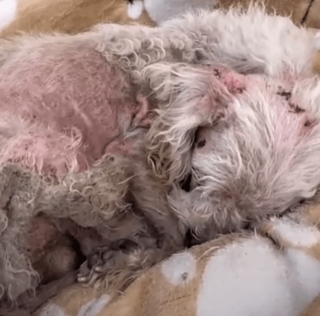 She had been left to fend for herself in the freezing nights, without food, warmth, or love. Her fur had almost completely fallen out, and she was dangerously thin. A few kind neighbors tried to help, bringing her scraps of food and checking on her, but the owner threatened anyone who came too close.